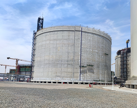 北燃天津南港LNG應(yīng)急儲備項(xiàng)目的薄膜型LNG儲罐是目前全球最大的陸上LNG薄膜罐,是為北京市提供安保用氣、加速京津冀一體化的重點(diǎn)項(xiàng)目,我司承攬此項(xiàng)目二、三階段共計(jì)六臺薄膜罐的防潮層施工工作
